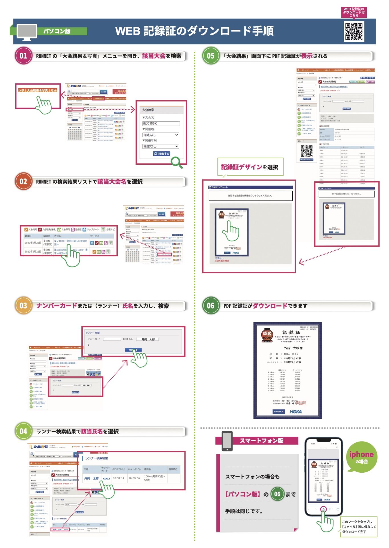 フィニッシュ会場各所にQRコードを設置しておりますのでご利用ください。